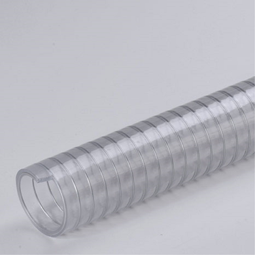 Tubo trasparente in compound a contenuto biologico, ottenuto da fonti naturali rinnovabili, la cui produzione permette una riduzione delle emissioni di CO2 nell’atmosfera. Spirale di rinforzo in acciaio.